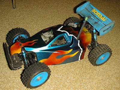Mein Oldtimer. Dieser allradgetriebene 1:8er Buggy mit 3,5cm³ Motor ist schon gute 12 Jahre alt und fährt trotzdem noch.
