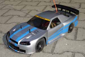 Allradgetriebenes Elektroauto. Die silberne Karosserie habe ich nach "2Fast-2Furious" beklebt.