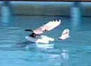 ein Wasserflug Test der Schwimmer und Kamerapositionen am Rainbow |