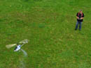 Fotografieren mit dem Quadrocopter (Feuerwehrübung, Trabbi-Club in Böhlen) so sieht die Foto-Arbeit mit dem Quadrocopter mit Kontrollmonitor aus |