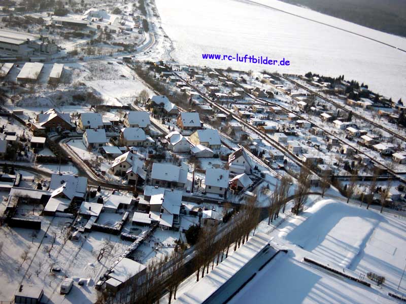 Blick auf die kleine Wohnsiedlung am Galgenberg und die Kleingartenanlage |